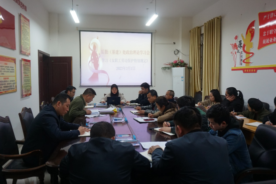 为加强后勤职工的政治理论学习,提高女职工的劳动保护意识,2023年3月1日下午,后勤管理处(基建处)在真如楼206会议室召开3月政治理论学习会,主题为学习贯彻《女职工劳动保护特别规定》。会议由副处长蓝凛主持,后勤全体管理岗以上职工参会。