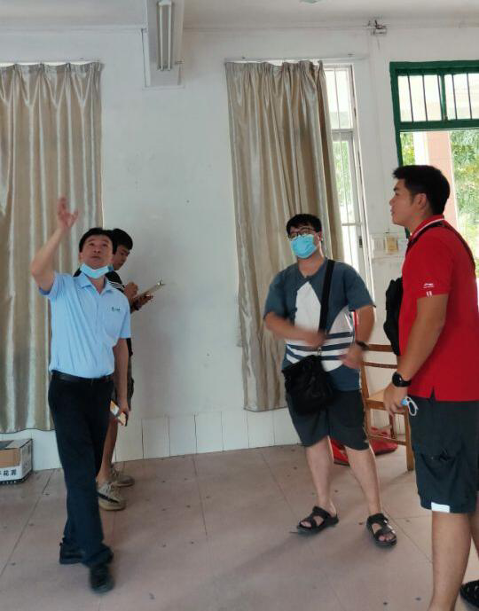 会后,基维科科员带领施工单位对东区雅园2号学生宿舍、翰墨楼、艺馨楼和西区食堂等7个楼栋进行实地勘察。