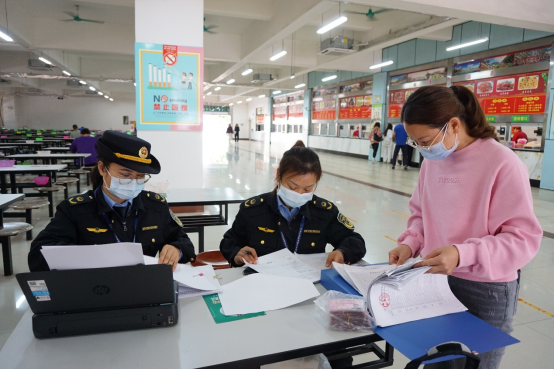 检查组查看了食堂环境卫生、加工操作流程、食品原材料贮存、生产日期,重点检查学校食堂食品安全管理制度,许可证、健康证,食堂设备设施,食物留样和记录,食堂定时消毒台账等。同时督促学校食堂的负责人要增强主体责任意识,及时发现风险隐患并进行整改。
