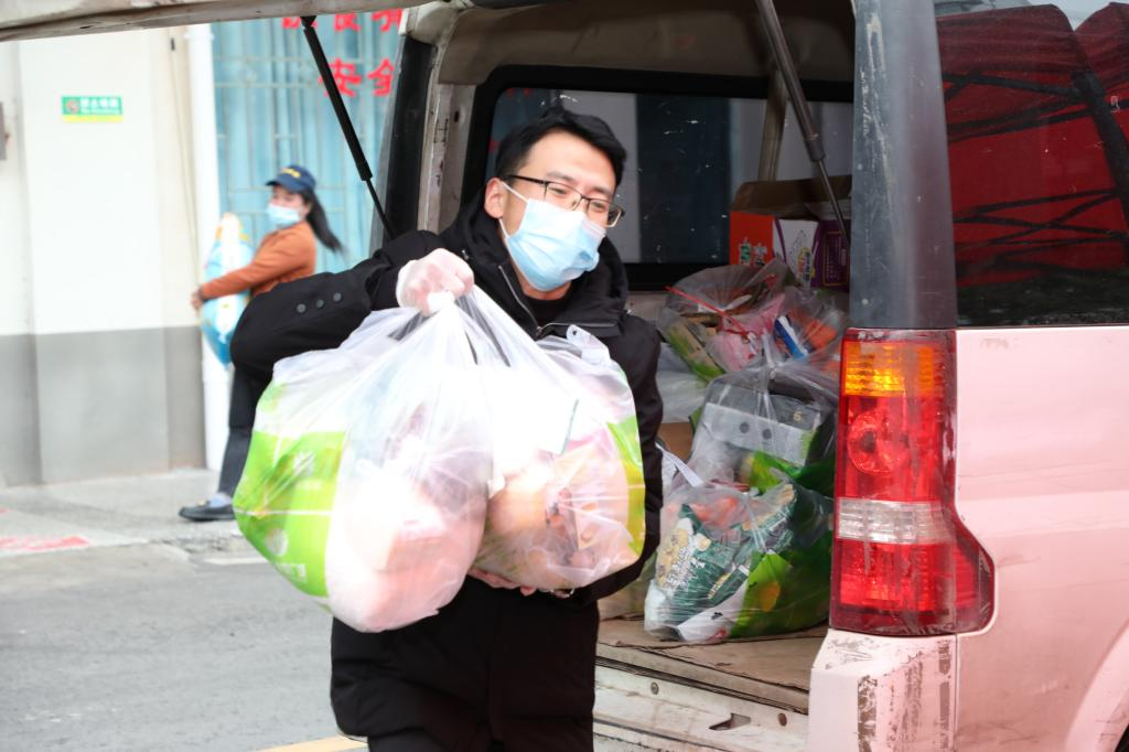 为了满足我校师生紧急的日常生活物资需求,宜州中汇大洋商业管理有限公司提出在学校搭建物资接应点,为我校师生提供日常生活物资配送服务。作为我校职工家属、宜州中汇大洋商业管理有限公司员工的小任,因为管控要求不能外出上班,主动提出在校内为师生接应、分发超市物资。“小任同志一个人分发全校师生的生活物资,从上午11点忙到下午7点,小孩子在家里都没人带……”