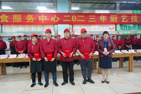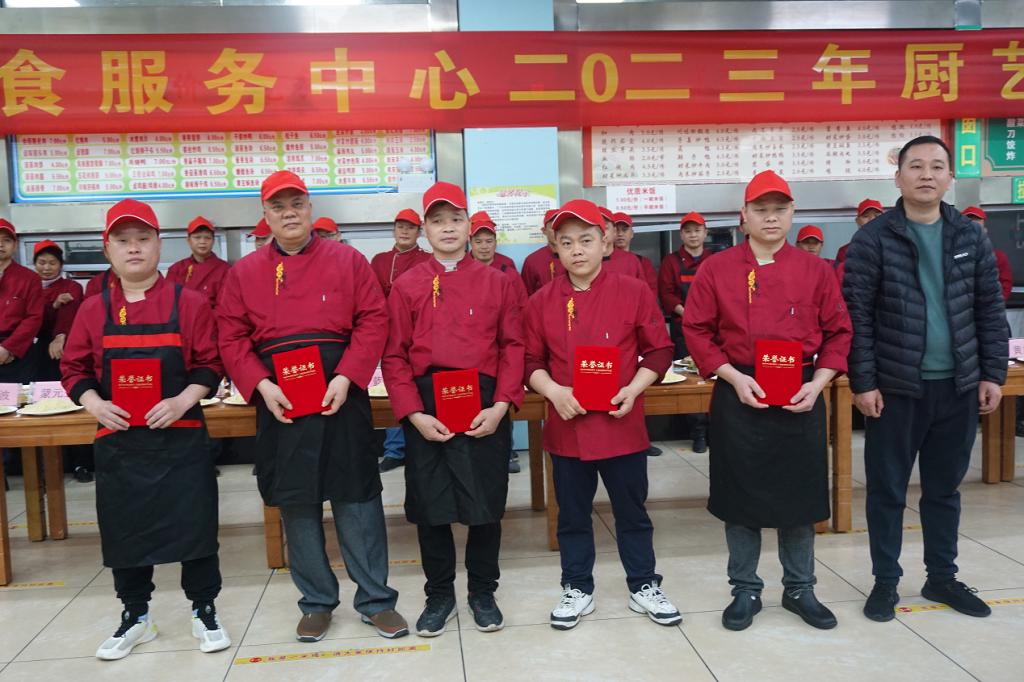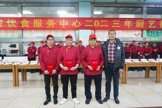 刘晓亮给荣获三等奖的厨师们颁发荣誉证书并合影留念