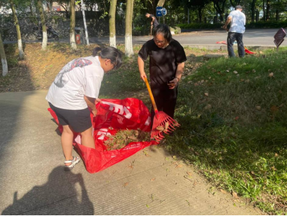 清扫过程中,他们认真清扫每一寸地面,将树叶和杂物进行分类整理,用心清理隐蔽角落区域,清除了长时间积累的落叶和尘土。在教职工住宿区,他们主动清理草坪和花坛,确保教职工居住环境的整洁与美观。