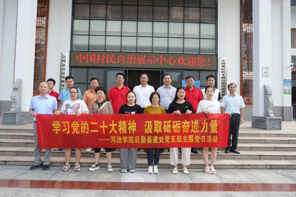 为深入学习贯彻党的二十大精神,进一步用党的创新理论武装头脑、指导实践、推动工作,切实把思想和行动统一到党的二十大精神上来。2023年6月10日上午,后勤基建处党支部组织全体党员到中国村民自治展示中心、宜州博物馆参观学习。
