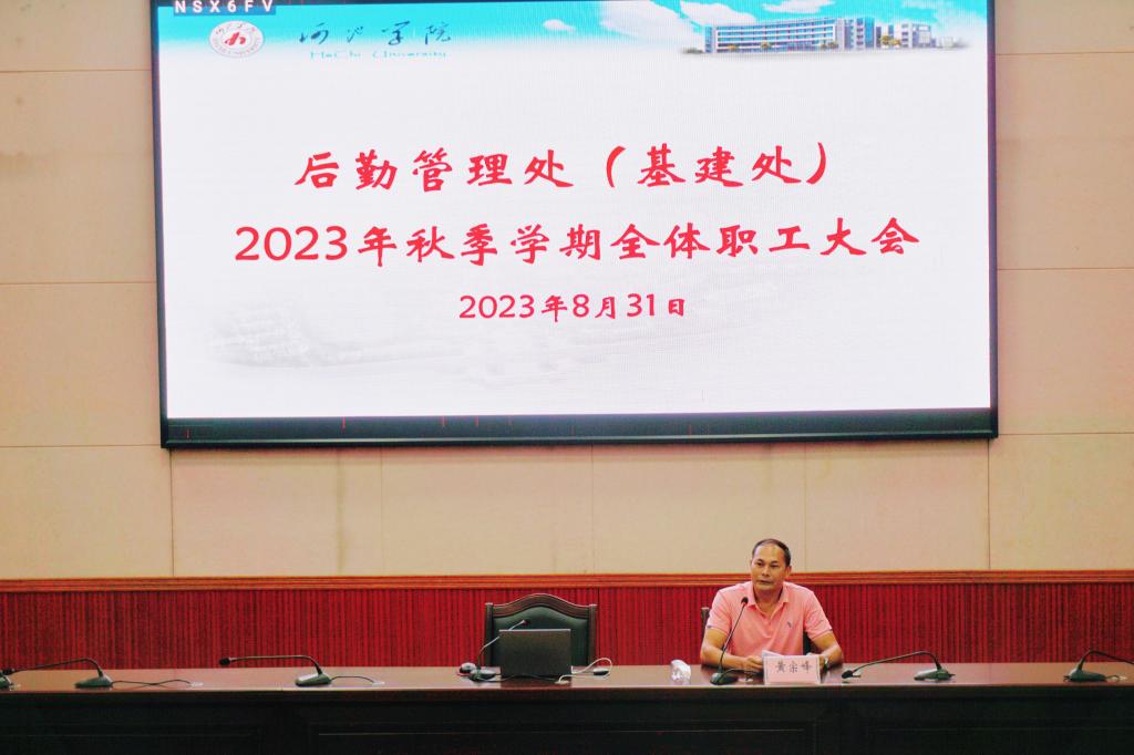 会上,黄宗峰首先代表后勤管理处对大家辛勤的工作表示充分肯定。他还强调了秋季学期的重要性,鼓励职工们以高度的责任心和使命感,为学院各项工作的顺利开展作出积极贡献。随后,详细介绍了后勤管理处近期的工作计划和重点任务。他强调,为了提升学院的整体形象和服务质量,后勤管理处将继续加大基础设施建设和维护力度,进一步改善师生的学习、生活环境。