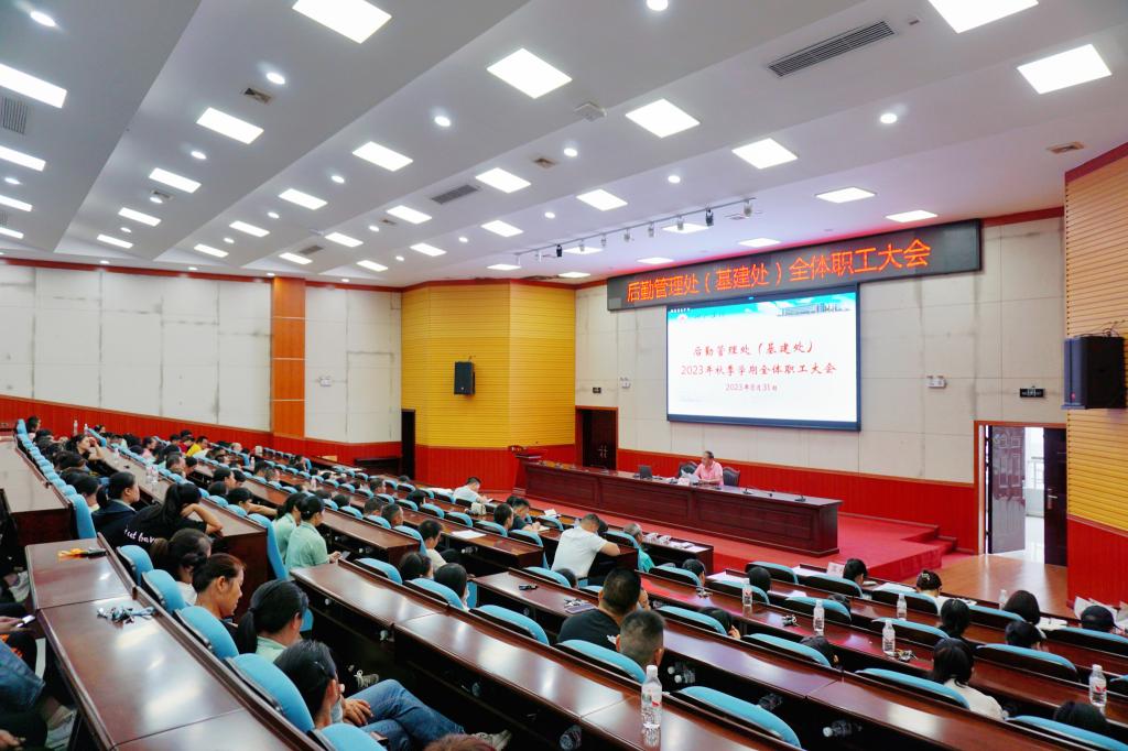 8月31日,必赢3003no1线路检测中心(基建处)召开2023年秋季学期全体职工大会,会议由处长黄宗峰主持,全体职工参会。