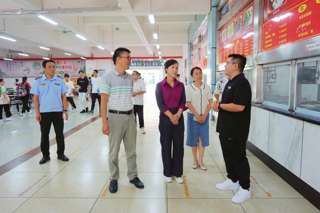 9月5日,河池市委宣传部副部长韦东平莅临我校食堂进行安全检查工作,重点检查东西区食堂的食品安全情况,以进一步确保师生饮食安全。检查工作涵盖多个方面,包括了解食堂员工的健康情况,薪资水平、对菜品采购来源与台账、食品安全留样情况、天然气管道检查情况、卫生检查情况的检查等。宜州区市场监督管理所、后勤管理处(基建处)副处长蓝凛陪同检查。