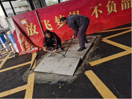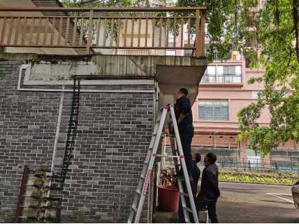 2023年3月30日上午,后勤管理处(基建处)学生公寓与水电维修管理科技术人员排查西校区用电安全隐患,进行电线路整改。