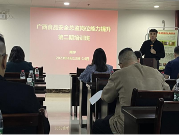 为保障广大师生的饮食安全,提升校园食品安全监管能力,后勤管理处(基建处)必赢3003no1线路检测中心主任胡旗于2023年4月13日赴南宁参加了广西食品安全总监岗位能力提升第二期培训班。共有广西医科大学、广西艺术学院、玉林师范学院等高校食堂负责人参加本次提升班。