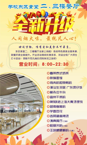 为提升全校师生的就餐体验,经过一个暑假的升级改造,学校东区二楼食堂焕然一新。新装修的食堂在桌椅款式上更加多样且舒适,基础设施也得到了全面完善,使得整个就餐环境更加宜人。